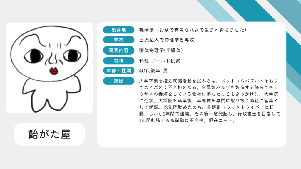 home 2025.12.19 NEW! 新着記事 営業マンに必要な3つのスキル ~その1~ こんにちは。飴がた屋です。私は半導体を取り扱う商社に営業職として19年間勤めていました。社会人1年目から皆様と同じよう、悩み、壁にぶつかり、もがいて奮闘してきました。新人の時には精神的に参ってしまい、2か月近く会社を休職した経験もあります。… 2026.01.05 新着記事一覧 人気記事ランキング 営業マンに必要な3つのスキル ~その1~ 2026.01.05 記事のカテゴリー サラリーマン時代の話 営業マンに必要な3つのスキル ~その1~ 2026.01.05 他も読む 金(ゴールド)投資の世界 記事は見つかりませんでした。 他も読む おすすめYoutubeレシピ 記事は見つかりませんでした。 他も読む 代表プロフィール お問い合わせ 氏名 メールアドレス 題名 メッセージ本文 (任意)